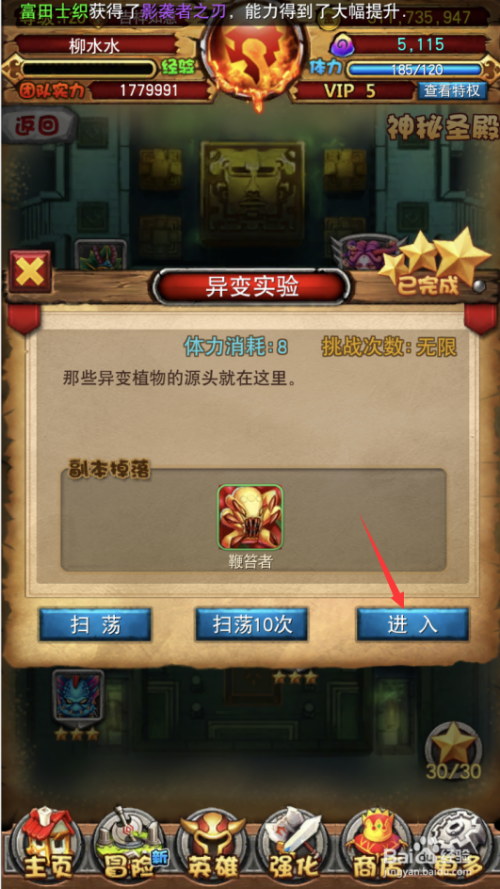 点击左侧通俗本,再点击右侧神秘圣殿副本。