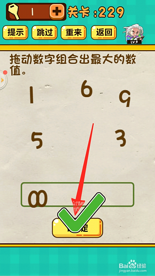 5.最后成果如下图,组合当作无限大,点击确定,呈现绿色对勾,即可过关。