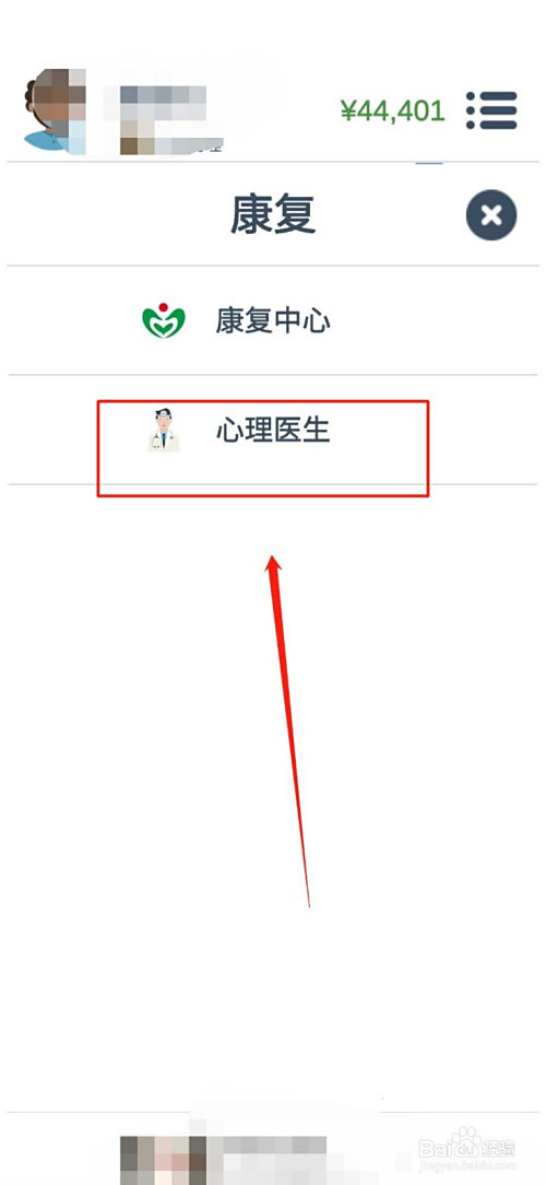 进入“康复中间”的界面后。再一次点击第二行的“心理大夫“,如图。