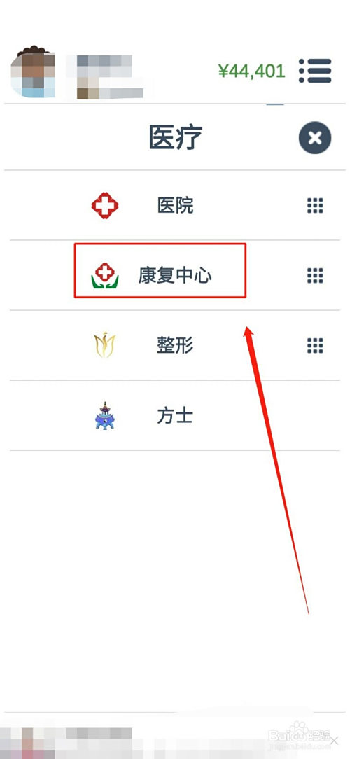 点击“康复中间”,如图