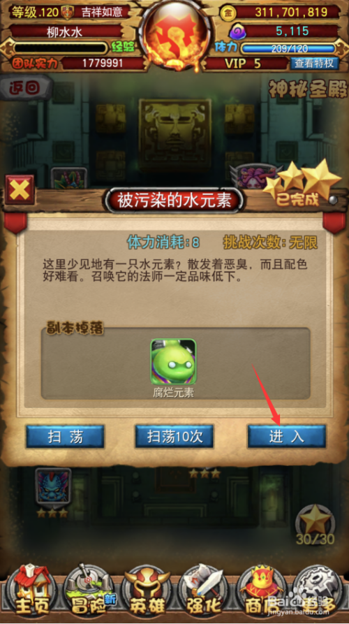 3.打开被污染的水元素副本,点击进入按钮。