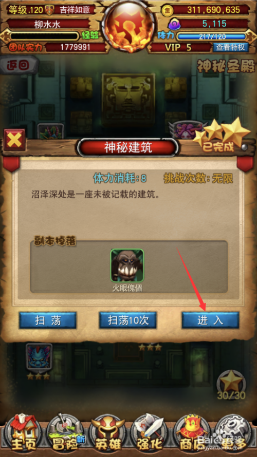 3.打开神秘建筑副本,点击进入按钮。