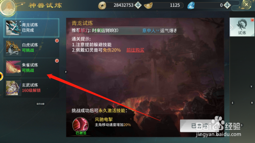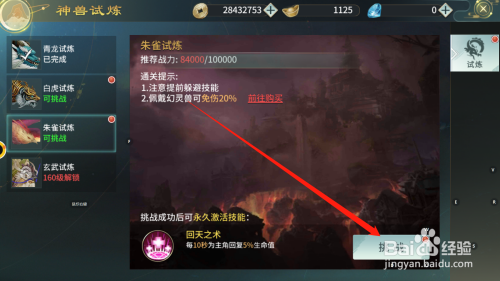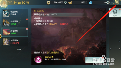 选择想要进行的试炼关卡