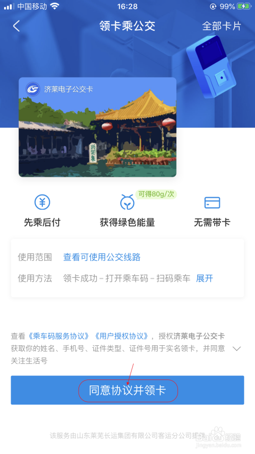 2、赞成和谈并领卡,当作功领卡后就可以利用搭车码搭车了