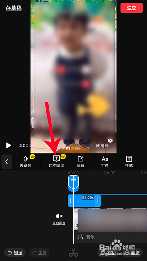 完当作后选择点击“文本朗读”,文本识别当作功后,就会朗读出添加的字幕。