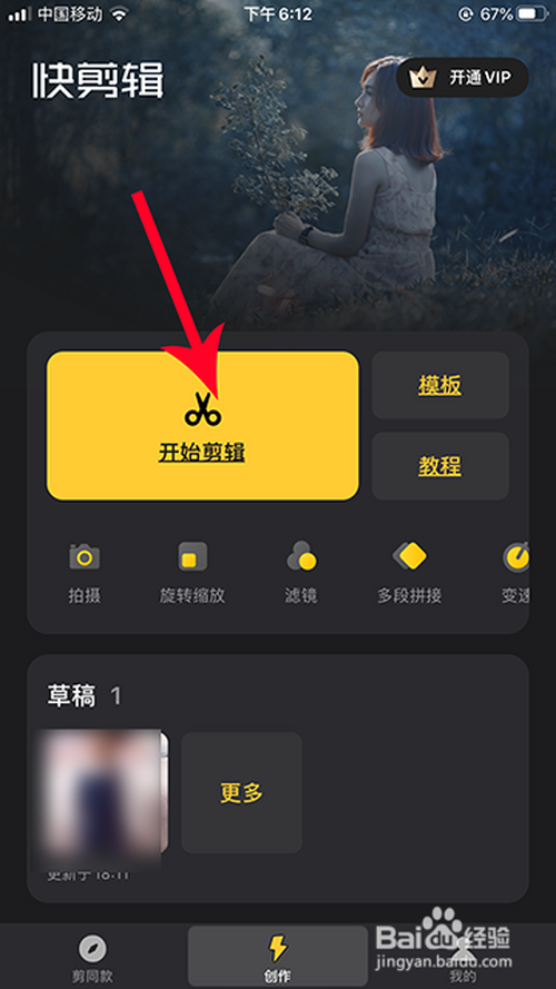 起首,点击打开手机桌面的“快剪辑”,进入快剪辑后,选择“起头剪辑”。