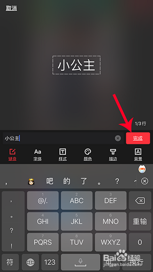 4.添加字幕,添加好后,点击“完当作”。