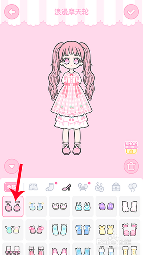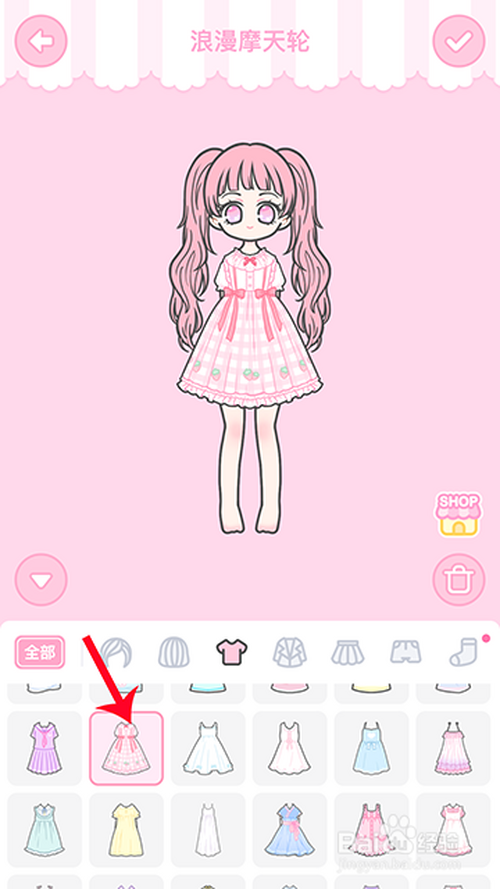 2.进入到装扮界面选一条草莓连衣裙穿上。