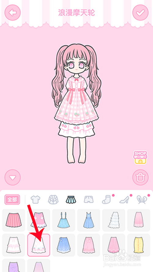 3.在短裙区,选择一条樱桃白色裙子穿上。