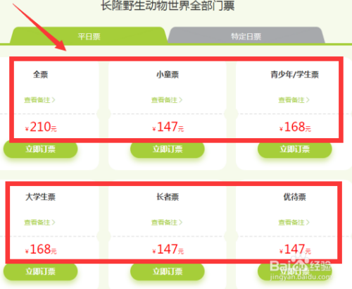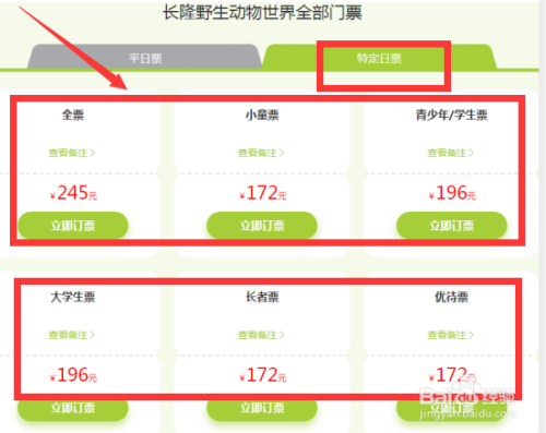 然后,再切换点击“特定日票”,查看门票价钱。特定日指的是法定节沐日,常日是指除去法定节沐日的日子。