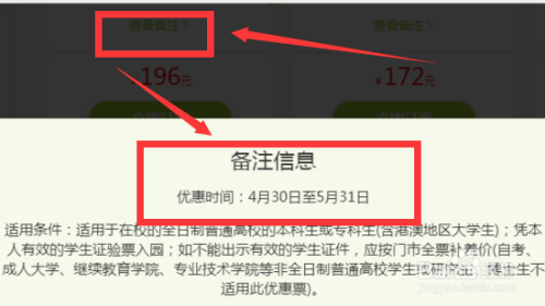 最后,点击门票价钱下方‘查看备注’,门票价钱的优惠时候截止到5月31日。