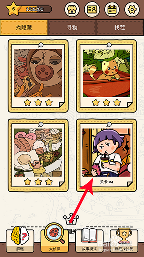 3.图纸领取后,选择104关打开。