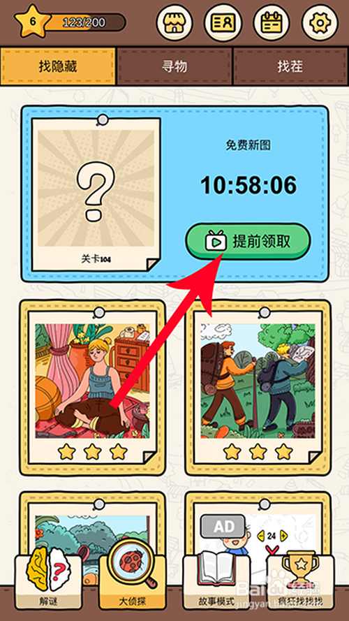 进入大侦察后,点击“提前领取”不雅看玩视频后,点击“领取”。