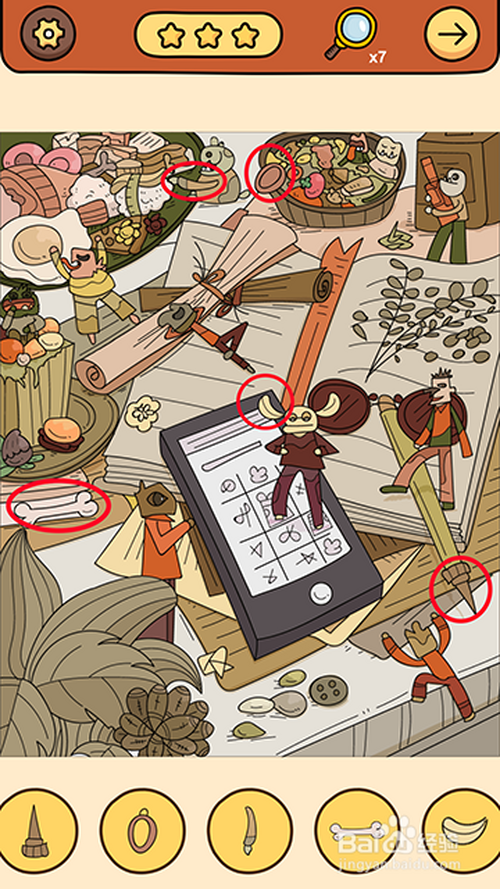 3.进入后用红色圈标出的是所找物品,点击就可以通关了。