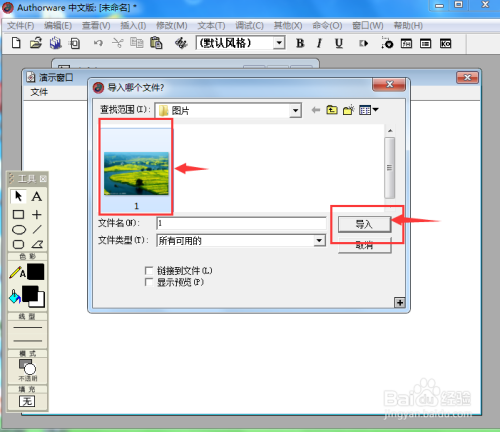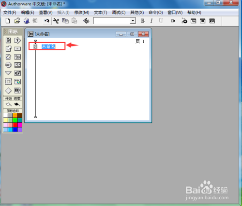 1、打开Authorware 7.0,将显示图标拉到流程线上;