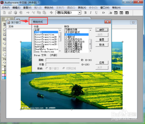 将图片添加到AW中,按ctrl+T,打开特效体例;