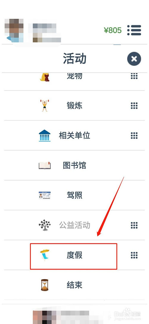 点击“勾当界面”里倒数第二行的“度假”,如图