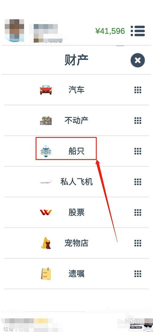 进入“财富”界面后,直接点击“财富”里第三行的“船只”,如图。