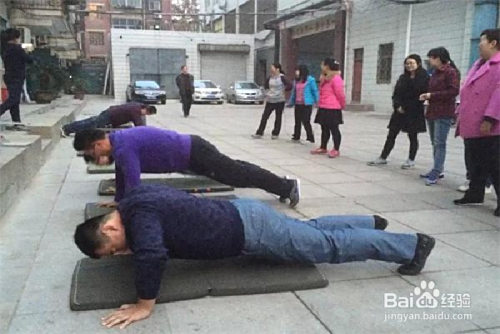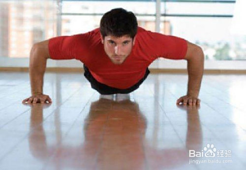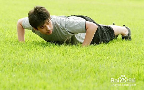 起首前面的五组练习都是尺度的俯卧撑,双手睁开,双臂下屈120度-90度,这样的尺度动作进行五组的练习。