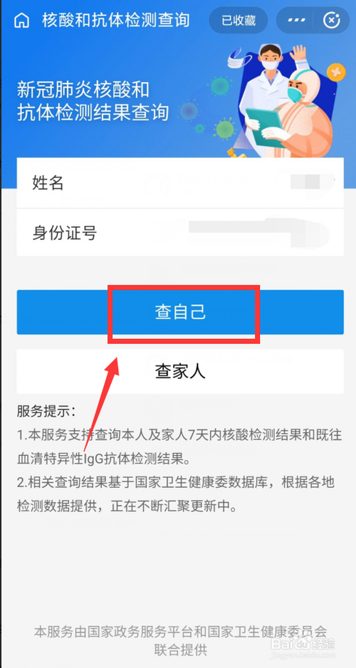 4、这儿会主动弹出您本身的信息,点击“查本身”