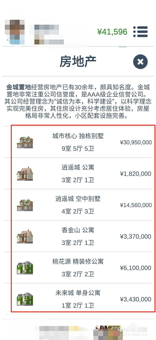 进入“房子生厂商品牌”界面后,选择您要采办的房子,如图。