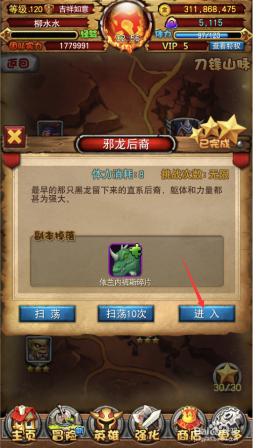 点击游戏本家儿菜单冒险,再点击子菜单副本按钮。