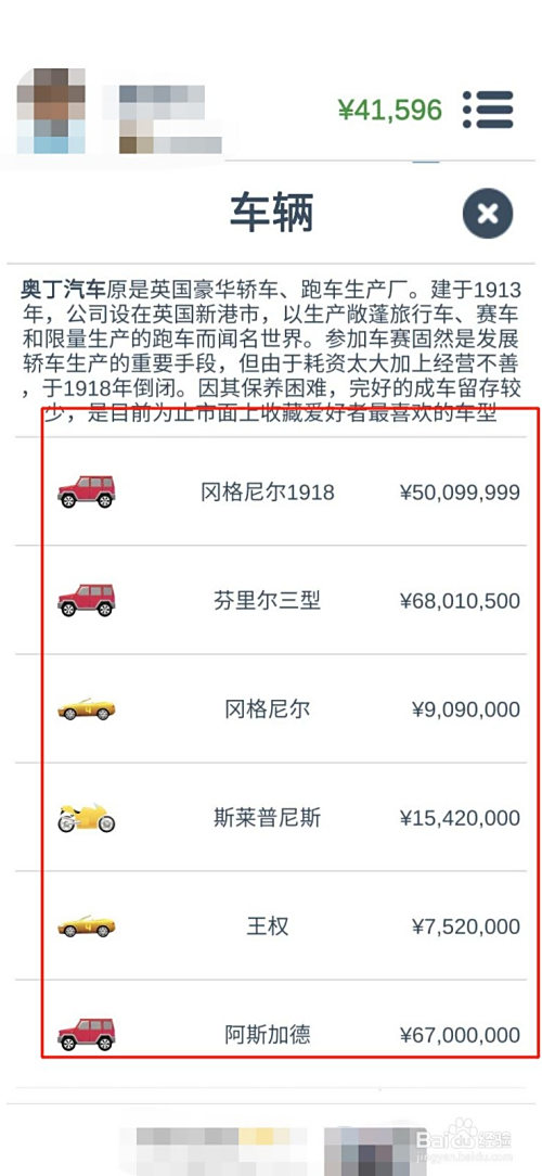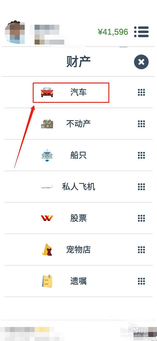 进入“财富”界面后,直接点击“财富”里第一行的“汽车”,如图。