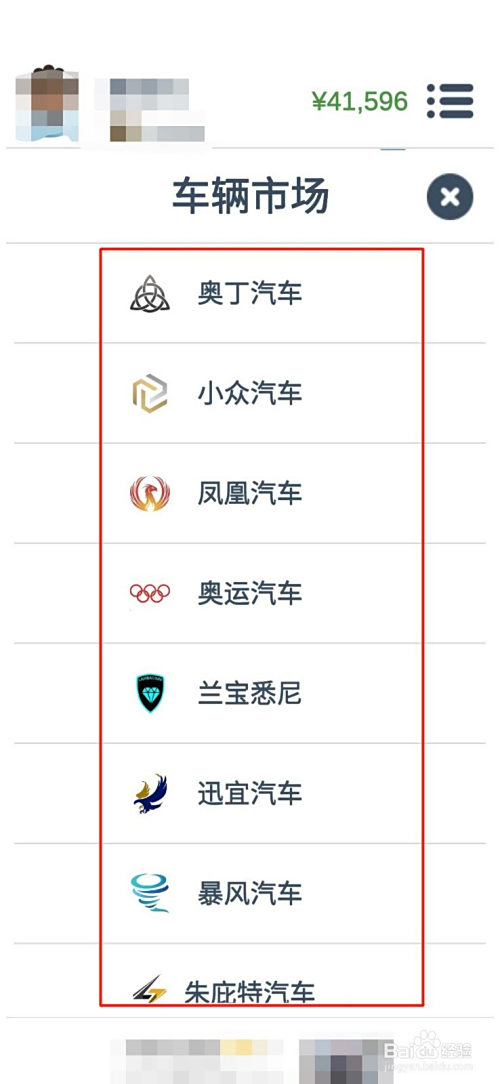 进入“汽车品牌”界面后,选择您要采办的汽车,如图。