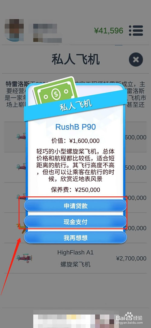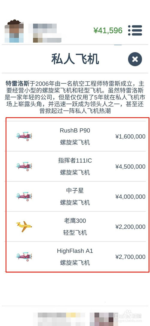 进入“私家飞机出产商品牌”界面后,选择您要采办的私家飞机,如图。