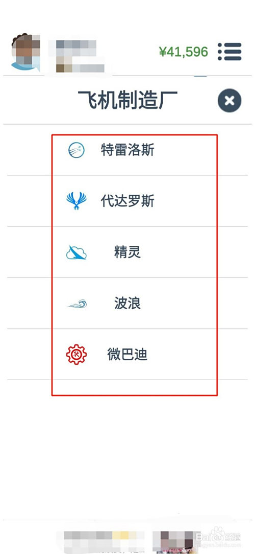 进入“采办”界面后,选择您要采办的私家飞机出产商品牌,如图。