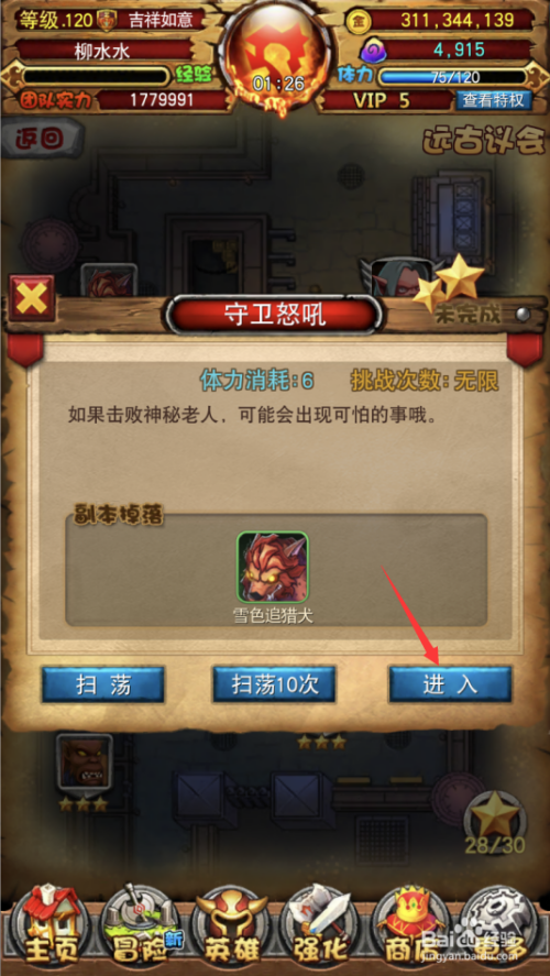3.打开保卫怒吼副本,点击进入按钮。