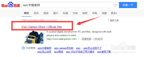 起首百度搜刮“epic中国官网”,点击进入