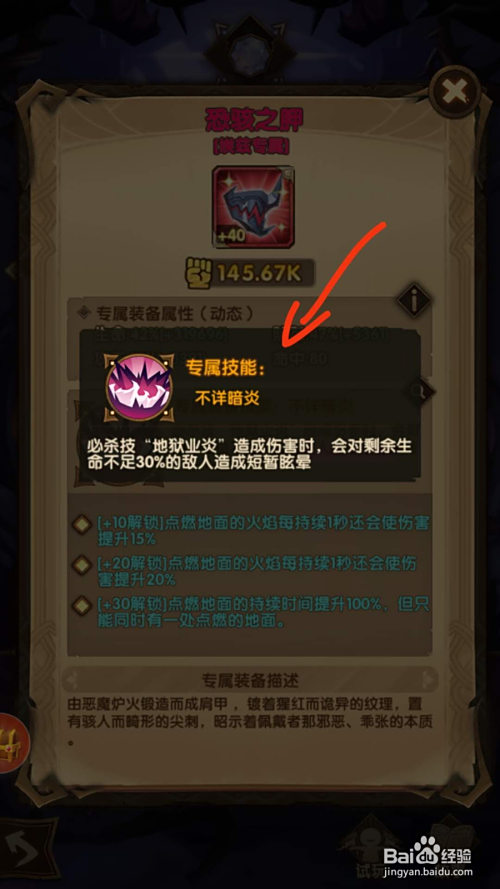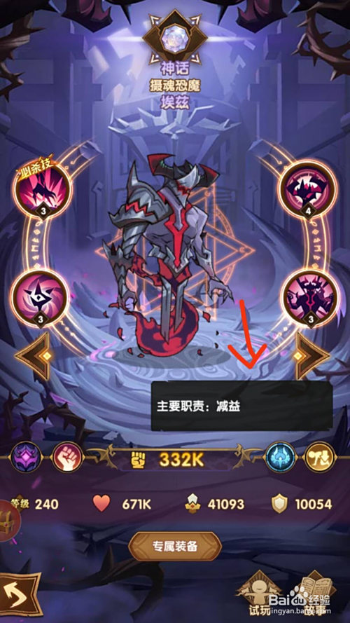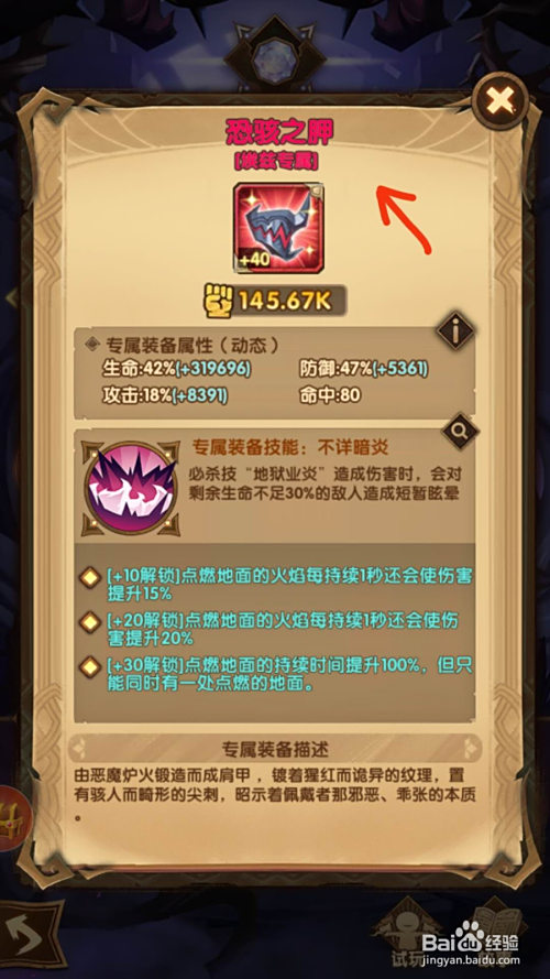 其专属装备为“恐骇之胛”,对英雄的生命、闪避、进犯都有属性晋升