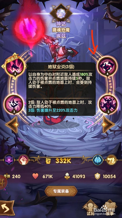 其专属装备技术是“不详暗炎”,可以使埃兹在战斗中对残剩生命不足30%的仇敌造当作短暂眩晕