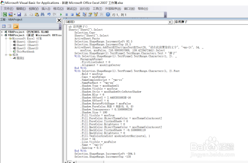 5.在VBA编纂界面,写入指定的VBA代码,然后点击封闭按钮。