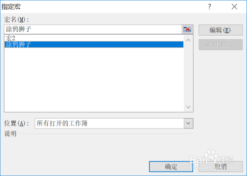 8.选择已经编写完当作的VBA代码,然后点击“确定”按钮。