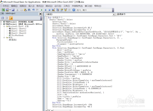 5.在VBA编纂界面,写入指定的VBA代码,然后点击封闭按钮。
