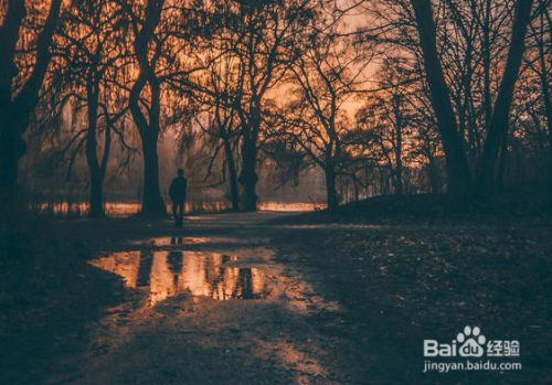 拍摄剪影照片,同样我们要注重简约,好比下张照片,有一片树,并且照片中布满了枝条,人物本家儿体又不是出格凸起,使得这张照片整体看起来很乱。