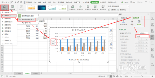 4、设置金额为纵标的目的坐标抽,并将字体调整为竖排;