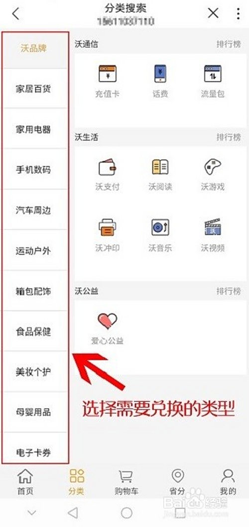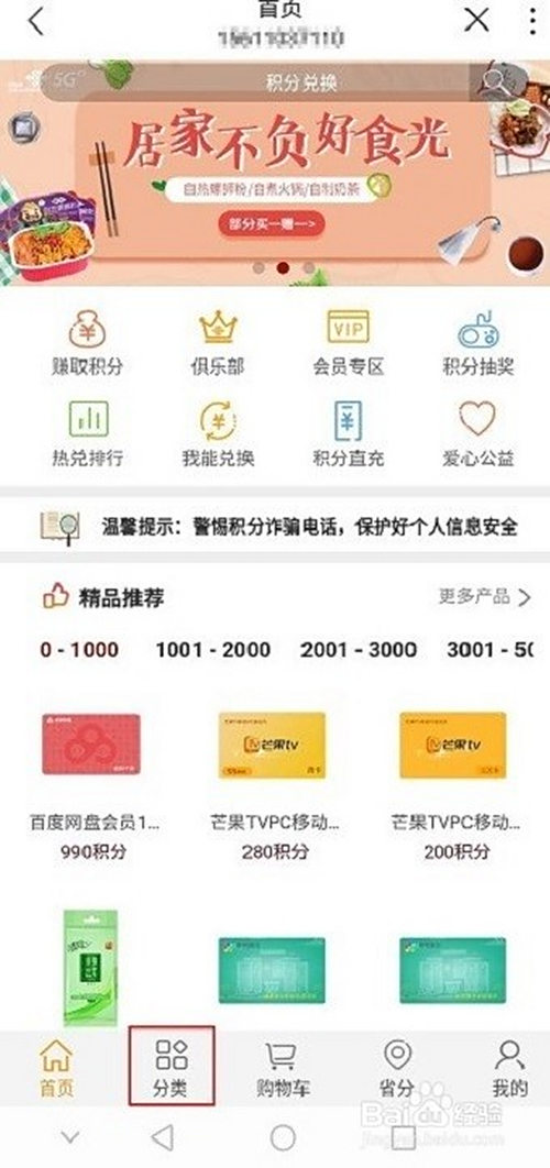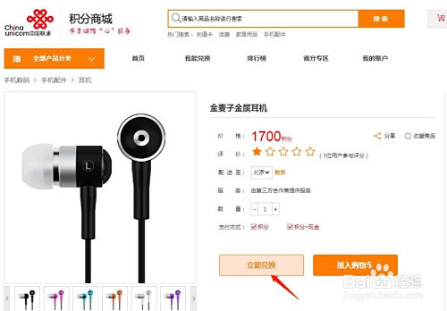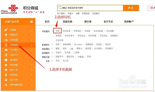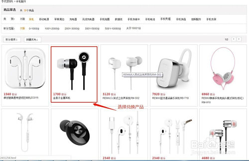 以积分兑换耳机为例,点击左侧产物分类选择手机数码>耳机;