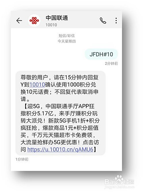 答复Y到10010,确认积分兑换10元话费。