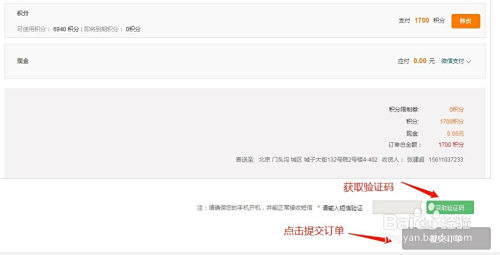 填写收货地址>获取验证码>填写验证码>提交订单即可。
