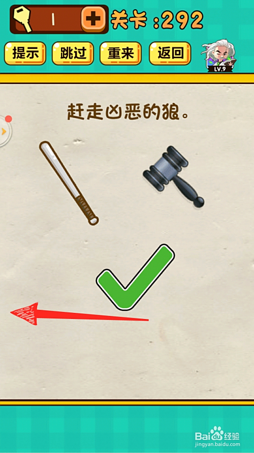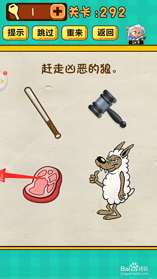 5.最后成果如下图,狼会跟肉跑失落,呈现绿色对勾,即可过关。