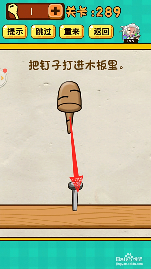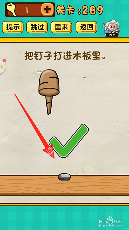 然后当锤子快移动到和钉子垂直时点击屏幕。
