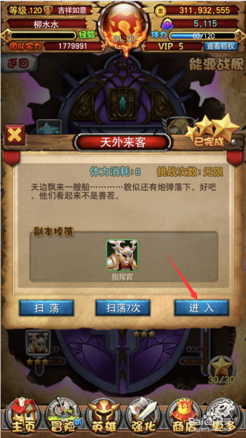 点击左侧通俗本,再点击右侧能源战舰副本。