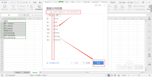 执行智能排列当作功后,数据分手环境如下。