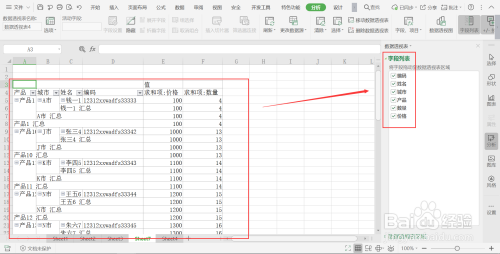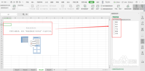 确定后,新建的数据透视表页面如下;