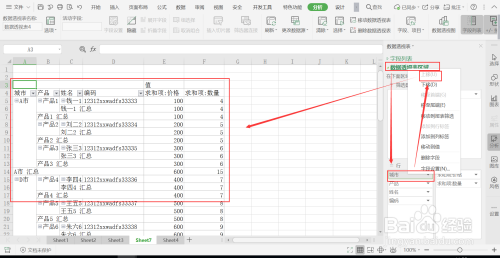 4、调整透视表区域数值;