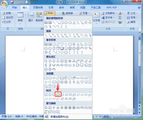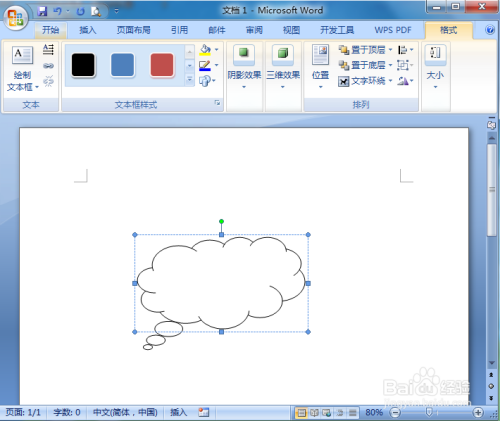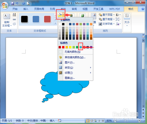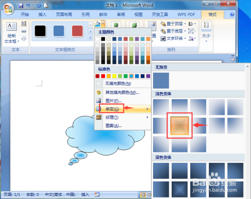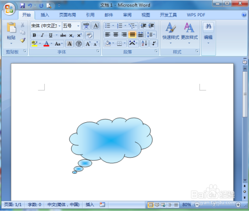 我们就在word中建立好了一个蓝色渐变云形标注。