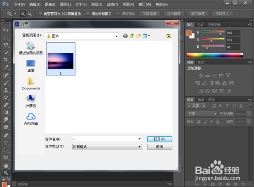 按ctrl+O,在打开窗口选中要处置的图片,点击打开;